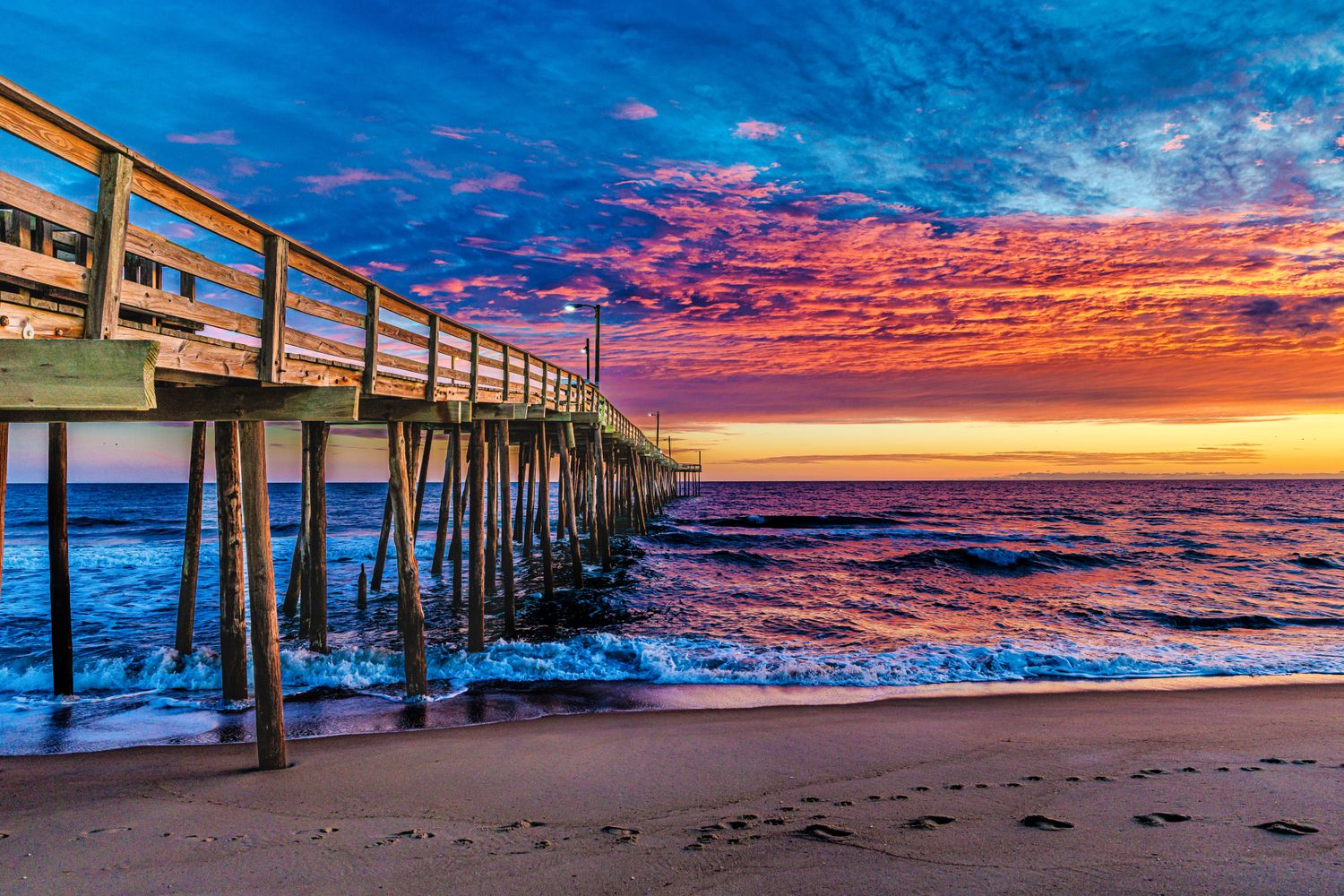 Sunrise illuminating the Nags Head Fishing Pier, Outer Banks, North Carolina